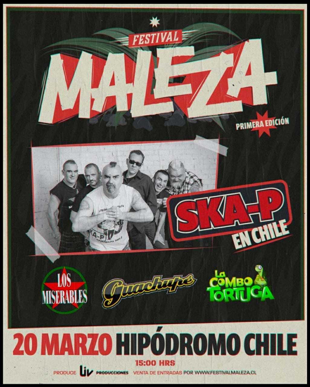 Noticias Festival Maleza traerá a Ska-P el próximo 20 de marzo Además los acompañarán Guachupé, Los Miserables y La Combo Tortuga. Por Diego Puebla Hernández | 17 Ene, 2020. 13:10 hrs Además los acompañarán Guachupé, Los Miserables y La Combo Tortuga. Finalmente el anuncio de la banda española era real. Festival Maleza, tendrá a Ska-P nuevamente en Chile, según lo anunciado en la página web oficial del evento. Lo acompañarán Guachupé, Los Miserables y La Combo Tortuga en el Hipódromo Chile, el próximo 20 de marzo. Las entradas para la cita se pueden conseguir via sistema Passline. Ska-P Jorge Alís repasa a la clase política en un nuevo video Volvieron a trabajar juntos: Adam Sandler y directores de "Uncut Gems" estrenaron cortometraje Sigue a FUTURO.cl en Google Discover Recibe nuestros contenidos directamente en tu feed. Seguir en Google Contenido patrocinado