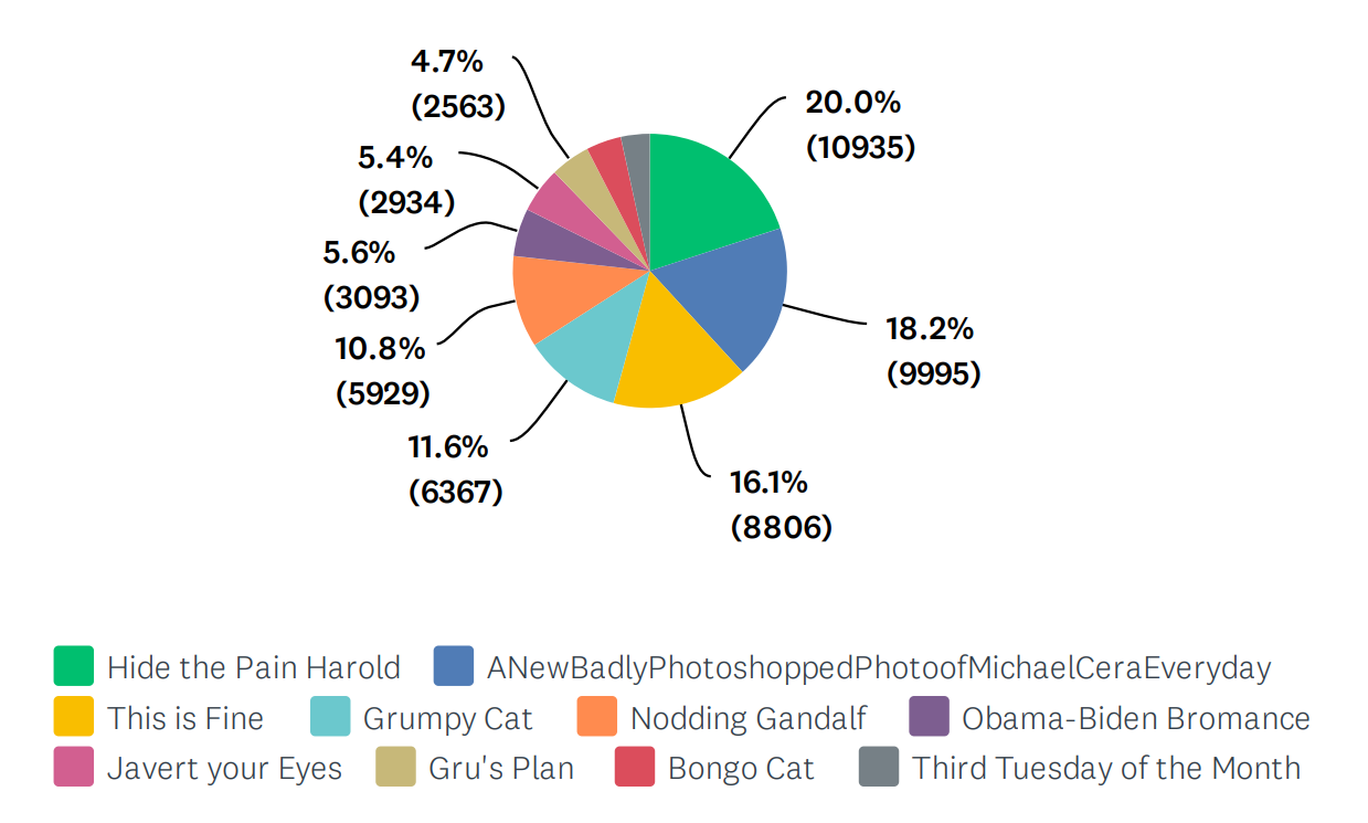En cuanto a los otros lugares, nos encontramos con «Badly photoshopped Michael Cera» (18,2%) y «This is fine dog» (16,1%). Por otra parte, más atrás quedaron memazos como «Grumpy Cat», «Nodding Gandalf» y «Obama-Biden Bromance».