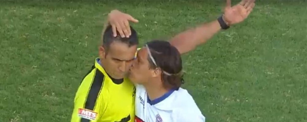 Tras un cobro por parte de Héctor Jona, Cabión le reclamó al juez del partido y terminó toda la jugada con un beso en la mejilla del árbitro.