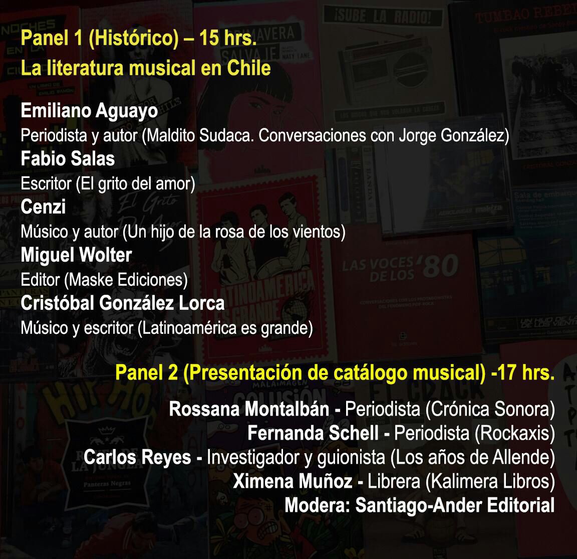 El encuentro se compone de tres paneles de conversación, con diversos autores de publicaciones sobre música que se han hecho en nuestro país, la idea es abarcar lo que ha pasado en este ámbito en más de 30 años. También habrá venta de vinilos y algunas otras atracciones.
