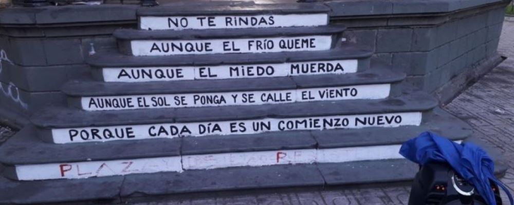 Un profesor deberá pagar $960.000 por pintar un poema de Mario Benedetti en unas escaleras de la Plaza de Armas de Talca.