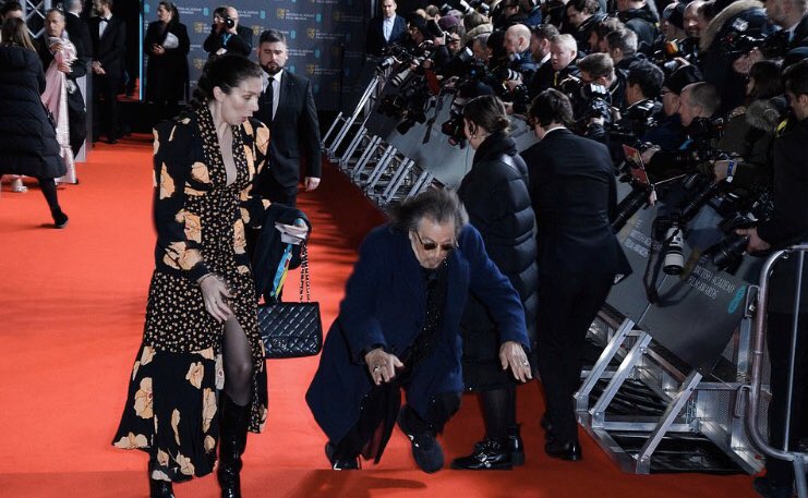 Mientras pasaba por la alfombra roja del evento, Al Pacino sufrió una caída que quedó registrada en una serie de fotografías, que no dejaron indiferentes ni a los asistentes ni a los seguidores del actor en redes sociales.
