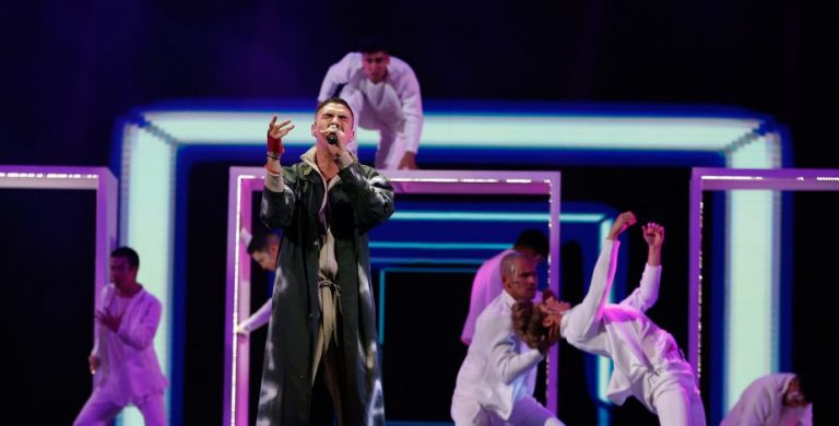 El cantante ecuatoriano de la competencia internacional, realizó una protesta simbólica, alusiva al estallido social.