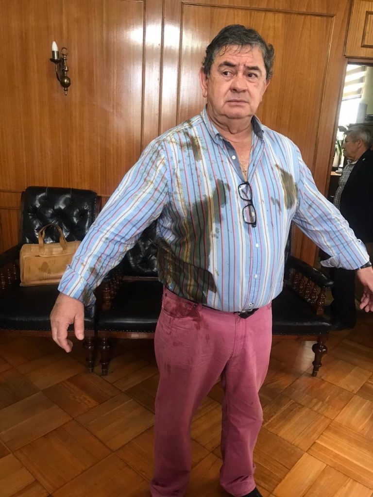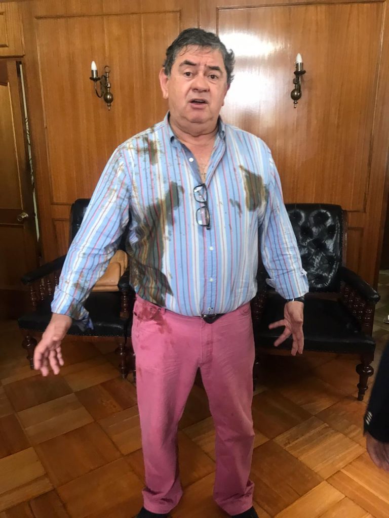 Juan Carlos Figueroa, concejal de la Democracia Cristiana difundió imágenes de cómo quedó su rostro y ropa tras la agresión.