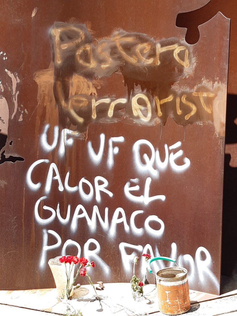 El lugar apareció con escritos del tipo “pastera terrorista” o “uf, uf, qué calor, el guanaco, por favor”, en un hecho de similares características a lo ocurrido el pasado 18 de enero con el túmulo de Víctor Jara.