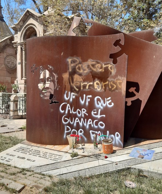 Durante el fin de semana, usuarios dieron cuenta de que la tumba de la expresidenta del Partido Comunista, Gladys Marín, fue profanada, siendo utilizada como foco de rayados alusivos al estallido social.