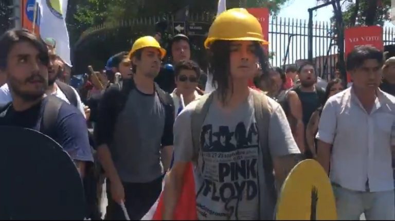 Uno de los temas más comentados, fue por un joven que junto con casco y escudo, utilizó la polera de Pink Floyd para asistir a la convocatoria.