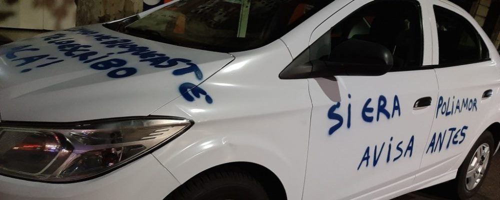 El auto cerca del Shopping Alto Palermo decía “como me bloqueaste te lo escribo acá“, “si era poliamor avisa antes“, y “relación abierta es cuando aceptan los dos” escrito en azul.
