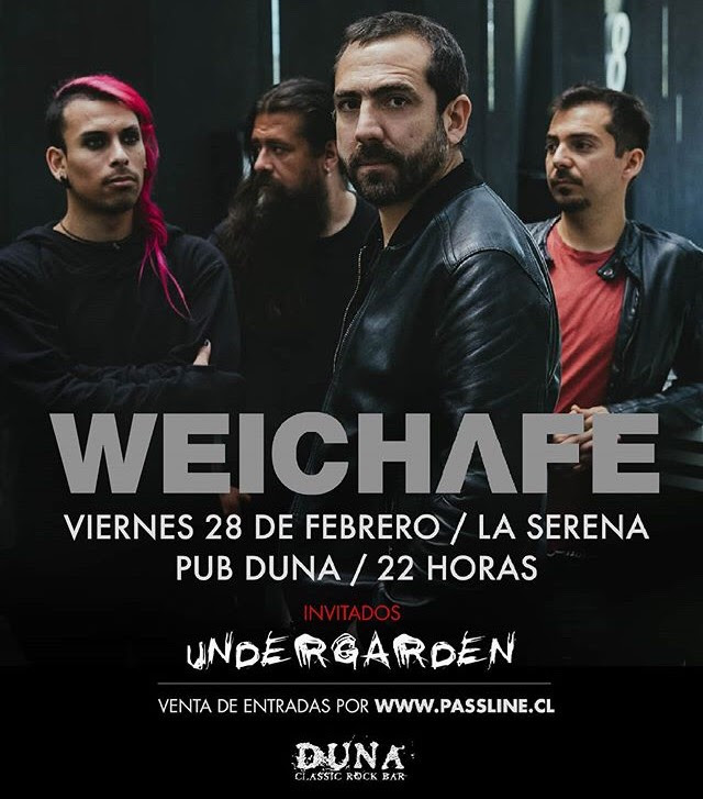 El concierto será este viernes 28 de febrero, desde las 22:00 horas en el Pub Duna (O’Higgins 633, La Serena), y las entradas están disponibles vía Passline en https://www.passline.com/eventos/weichafe-en-la-serena-pub-duna-34279.