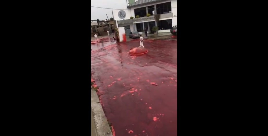 Esta semana, un barrio residencial de Morrón, Buenos Aires, se llenó de sangre animal luego de que un tanque de 5.000 litros que venía de un matadero, se reventara en las calles.