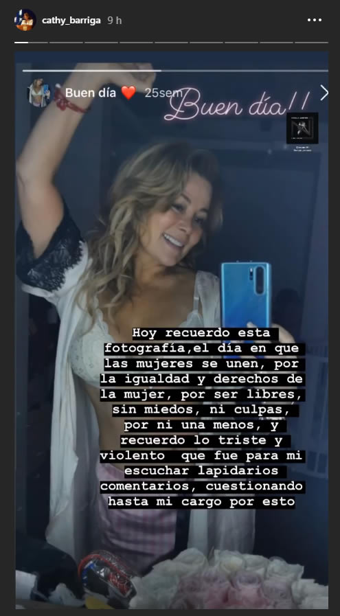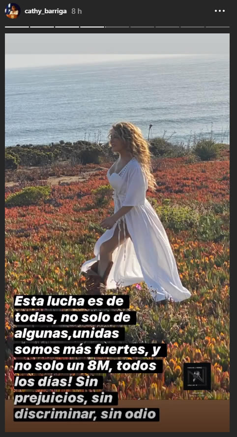 Además, Barriga agregó que “nuestro cuerpo no es propiedad de nadie, sin culpas, ni miedos, ni prejuicios, esta lucha es de todas, no solo de algunas, unidas, somos más fuertes, y no solo un 8M, todos los días. Sin prejuicio. Sin discriminar. Sin odio”.