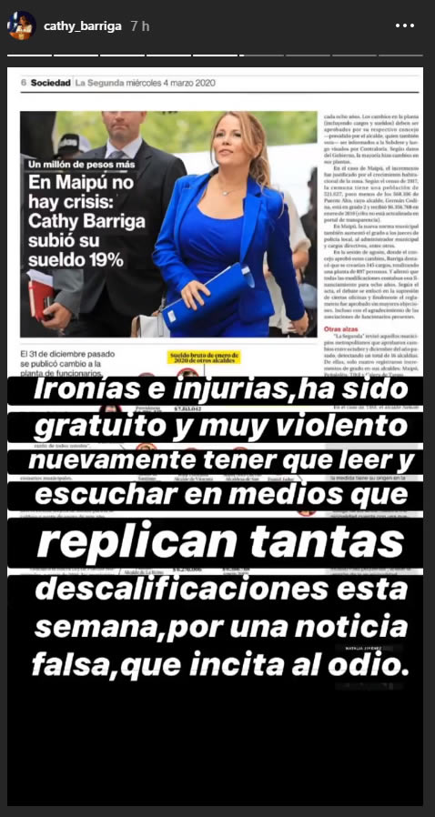 La alcaldesa de Maipú, Cathy Barriga, publicó en su cuenta de Instagram diversas fotografías bajo el margen del Día Internacional de la Mujer.