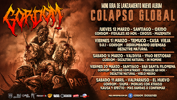 Una jornada que unirá metal y punk será la que se vivirá el próximo jueves 12 de marzo en el Bar Óxido de Santiago cuando GORDOM haga el lanzamiento oficial en vivo de su álbum 2020 “Colapso Global”
