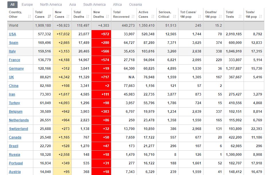 Según datos recopilados por Worldometers, la cifra de contagiados aumentó a 1.903.691.