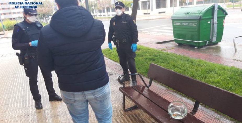 Agentes de la @policia han sancionado a una persona por salir a «pasear» a sus peces por la calle. Los agentes le avistaron en #Logroño portando una pecera en contra de lo estipulado en el RD del Estado de Alarma.