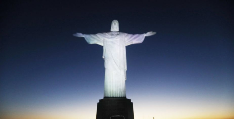 Junto con las imágenes, la compañía a cargo de la intervención proyectó un traje de doctor por el contorno de la estatua, la cual se erige sobre la turística ciudad brasileña por sobre los 710 metros sobre el nivel del mar.
