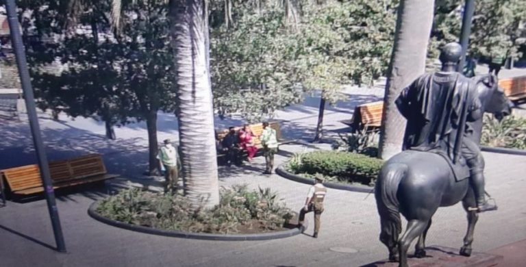 ADN.cl consignó que Carabineros realiza un operativo policial la tarde de este miércoles en Plaza de Armas en Santiago por una persona confirmada con Covid-19 paseando en el lugar.