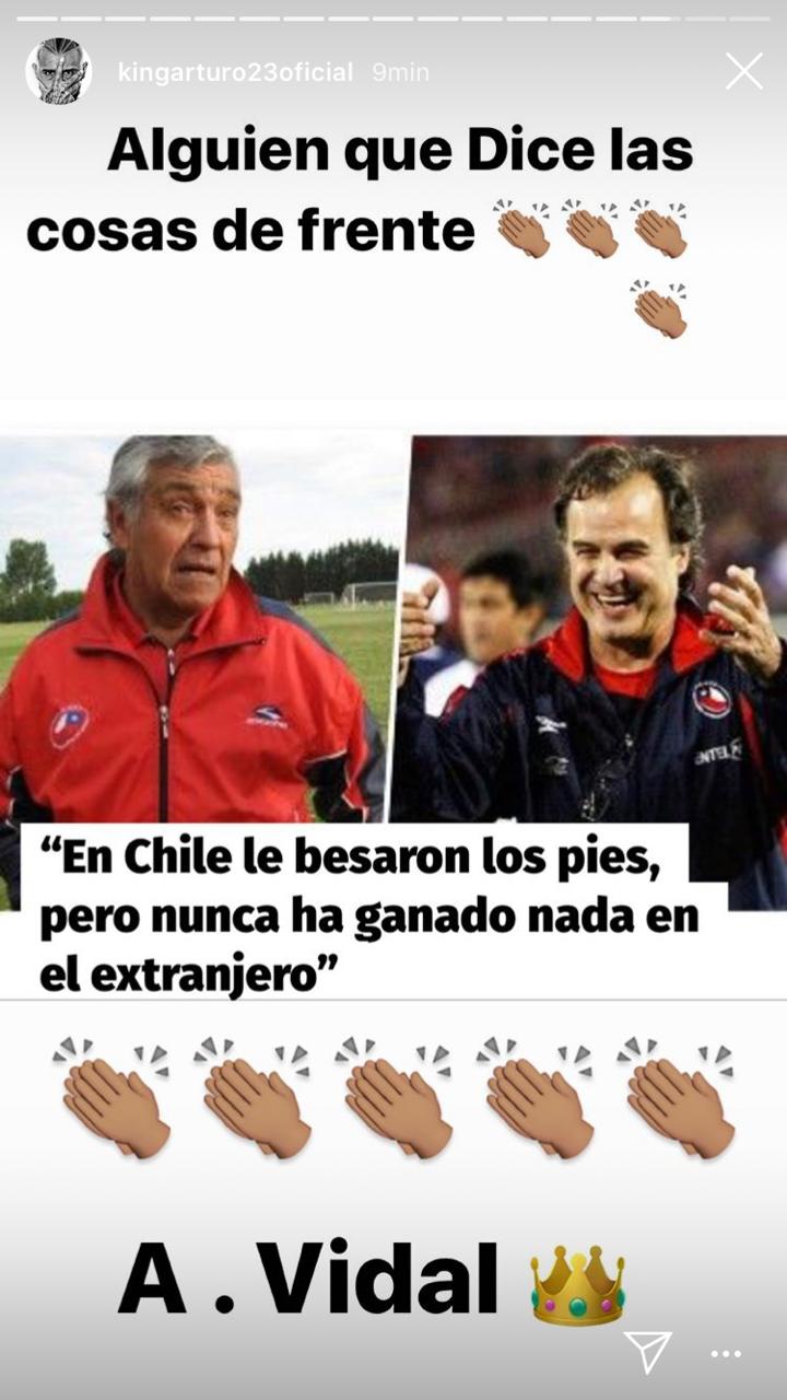 Sus palabras hicieron eco, y uno de sus exdirigidos, Arturo Vidal, respaldó sus dichos. “Alguien que dice las cosas de frente”, señaló el “King” a través de su cuenta de Instagram.
