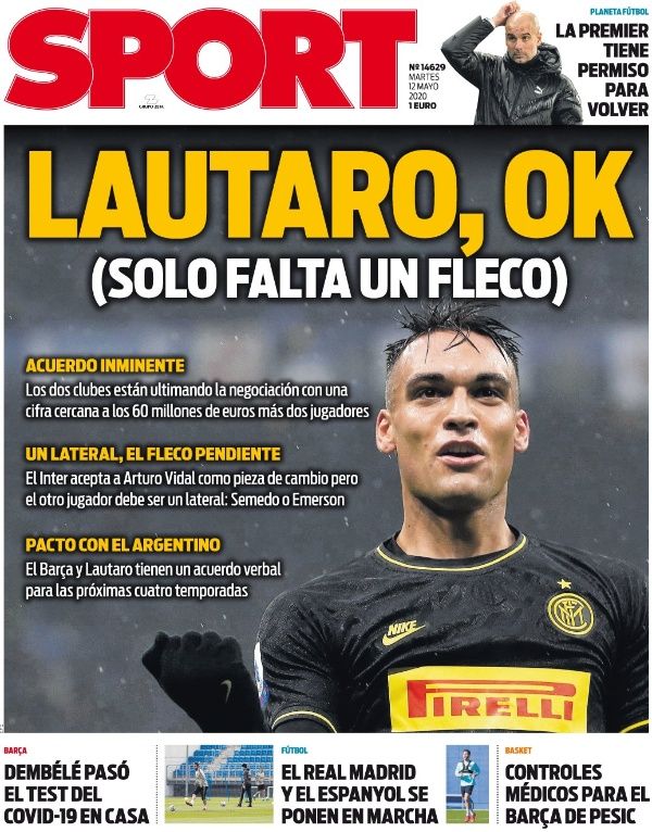 Este martes, Diario Sport en su portada aseguró que el Inter de Milán habría aceptado a Arturo Vidal como parte de la negociación que mantienen con los catalanes por el fichaje del argentino Lautaro Martínez.