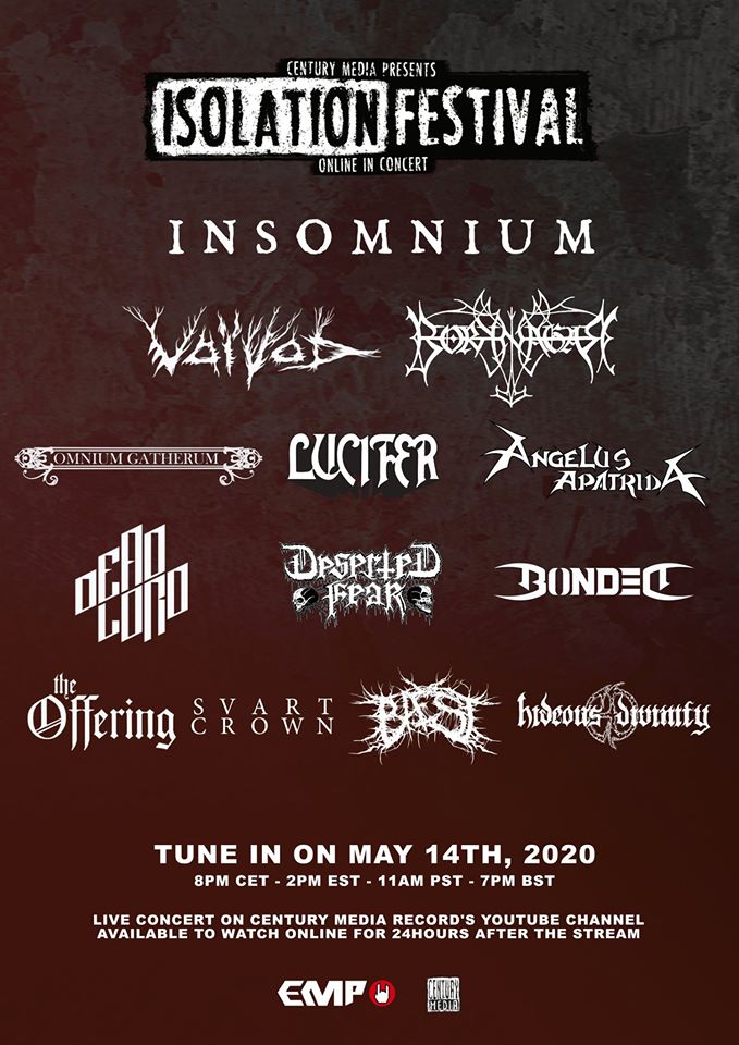 Noticias Isolation Festival juntará a Voivod, Borknagar, Lucifer y otros exponentes del metal en evento online El encuentro se realizará este jueves 14 de mayo y estará disponible por 24 horas. Por Jorge Lagas | 13 May, 2020. 14:37 hrs Sumándose a las iniciativas de festivales online que se han hecho en estas últimas semanas, se anuncia uno dedicado al metal, con grandes bandas como Voivod, Borknagar y Lucifer, entre otros. El Isolation Festival es este jueves 14 de mayo a través del canal de Youtube del sello Century Media, a las 14 hrs de Chile. Estará online solamente 24 horas. Otras bandas participantes: Angelus Apatrida, Insomnium, Dead Lord, Baest y varias más, pueden ver la lista completa acá: metal música El llamado del Doctor Ugarte por el coronavirus: "Se acabó el tandeo" Senado aprueba rebaja de dieta parlamentaria Sigue a FUTURO.cl en Google Discover Recibe nuestros contenidos directamente en tu feed. Seguir en Google Contenido patrocinado