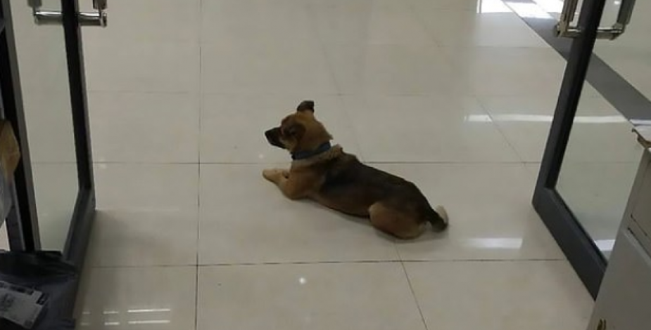 7-yo dog Xiao Bao waited patiently for his owner at Wuhan hospital.Staff at Wuhan Taikang Hospital fed Xiao Bao