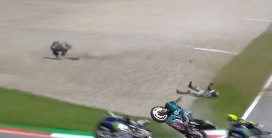 Fue allí cuando Franco Morbidelli impactó de lleno la motocicleta y salió rápidamente por los aires ante la mirada de todos los pilotos que tuvieron que hacer duras maniobras para evitar golpearlo. Por fortuna, ambos pilotos salieron por sus propios medios, pero sus vehículos terminaron completamente destruidos.