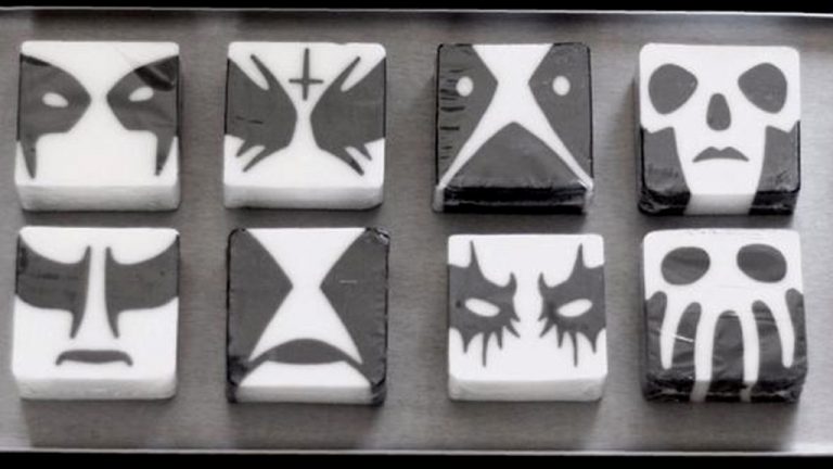 Para limpiarte con estilo y brutalidad, crearon estas ingeniosas barras que presentan los rostros de King Diamond, Abbath, de la voz de Ghost, y otros más. Acompañados por un lindo platito con un pentagrama que le da todo el estilo necesario.