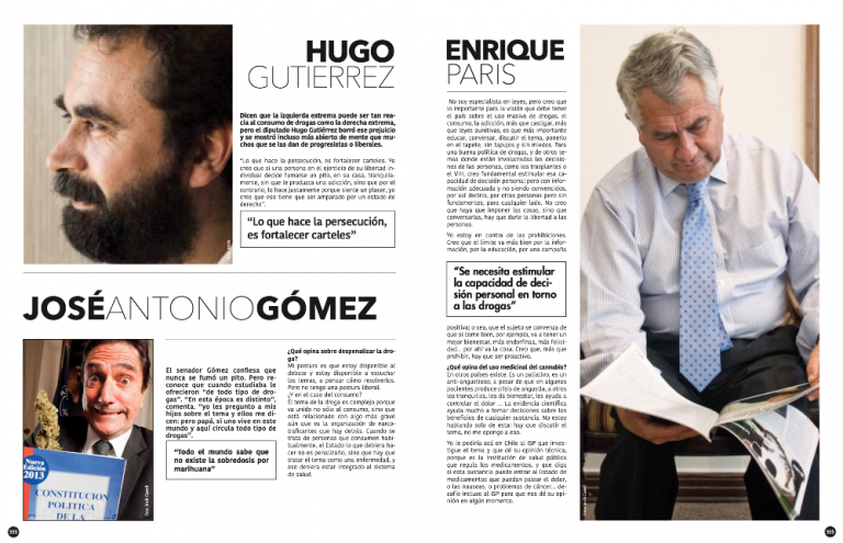 Algunos infaltables de este libro son, por ejemplo, una selección de editoriales de temas contingentes, las mejores frases de distintas personalidades y potentes entrevistas a Jorge González, Boris Quercia, Calle 13, B-Real, Enrique París, Marcela Sabat, Carolina ‘Crespita’ Rodríguez, Karol Cariola, Anita Tijoux, y Patricio Fernández, entre otros. Todos parte de las más de 400 conversaciones que se tuvieron con personas del mundo de las ciencias, la política, las artes o el activismo, y que en algún momento compartieron sus impresiones con Revista Cáñamo.