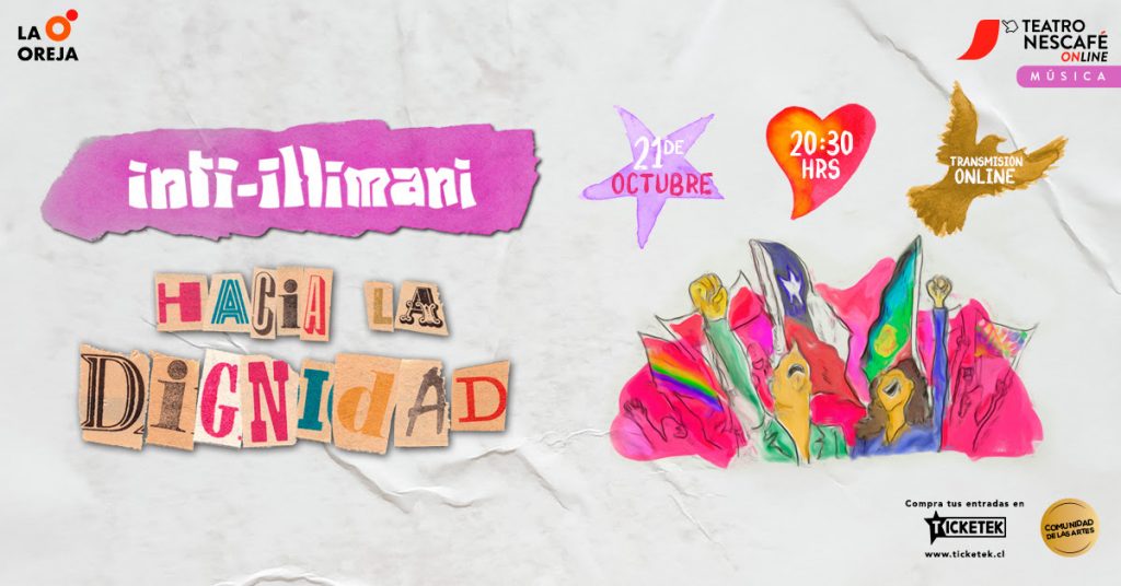A casi un año de su última presentación en vivo, el reconocido grupo nacional regresa con el ciclo TEATRO NESCAFÉ ONLINE para presentar, vía streaming, “Inti Illimani Hacia la Dignidad”, inédito concierto que conmemora el primer aniversario del estallido social, el miércoles 21 de octubre.
