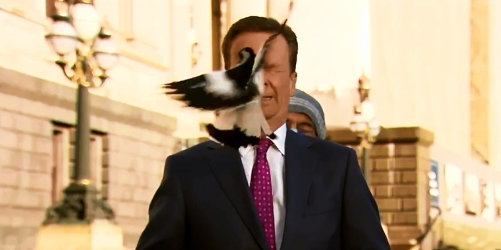 SWOOPING SEASON: Senior reporter @Brett_McLeod fell victim to a swooping magpie just moments before tonight's LIVE cross. #unflappable #9News pic.twitter.com/ZFSrVTR3ze