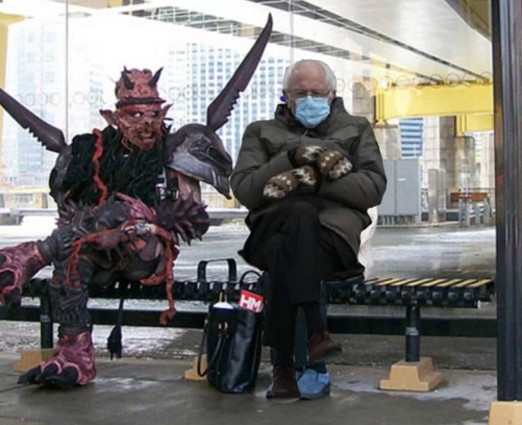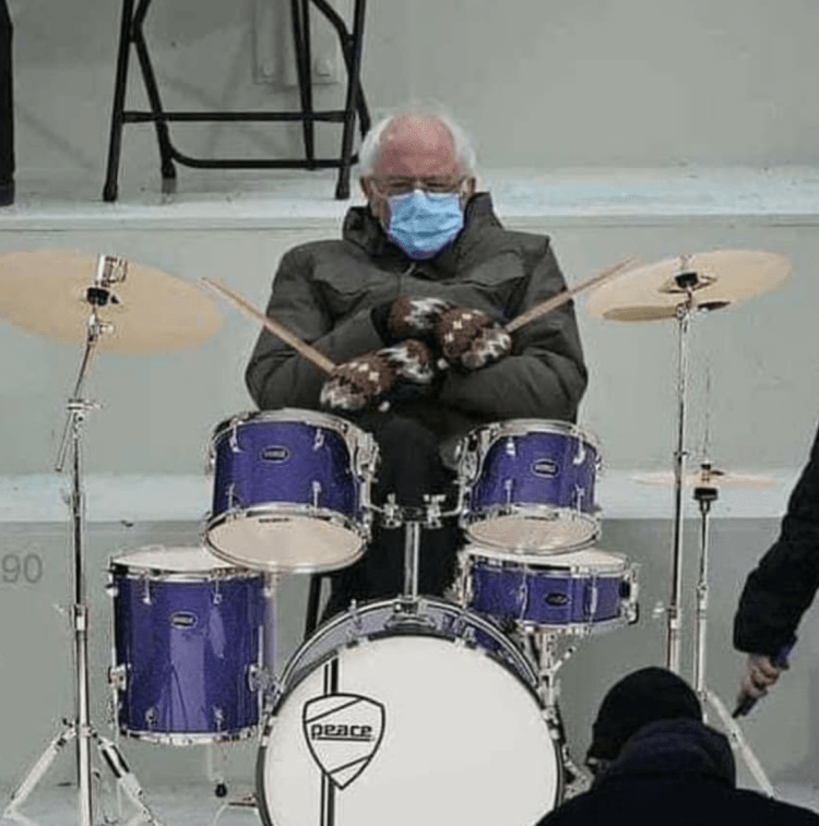Sanders abrigado para protegerse del frío de Washington en pleno invierno, con guantes incluídos, ha sido objeto de estos memes, traspasando todas las fronteras y temáticas. Tanto así, que desde el rock hay muchísimo material para compartir.