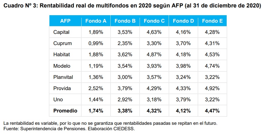 A pesar de la crisis económica provocada por la pandemia del coronavirus, y de acuerdo con el reporte de Ciedess correspondiente de diciembre, todos los fondos de las AFP cerraron 2020 con ganancias.