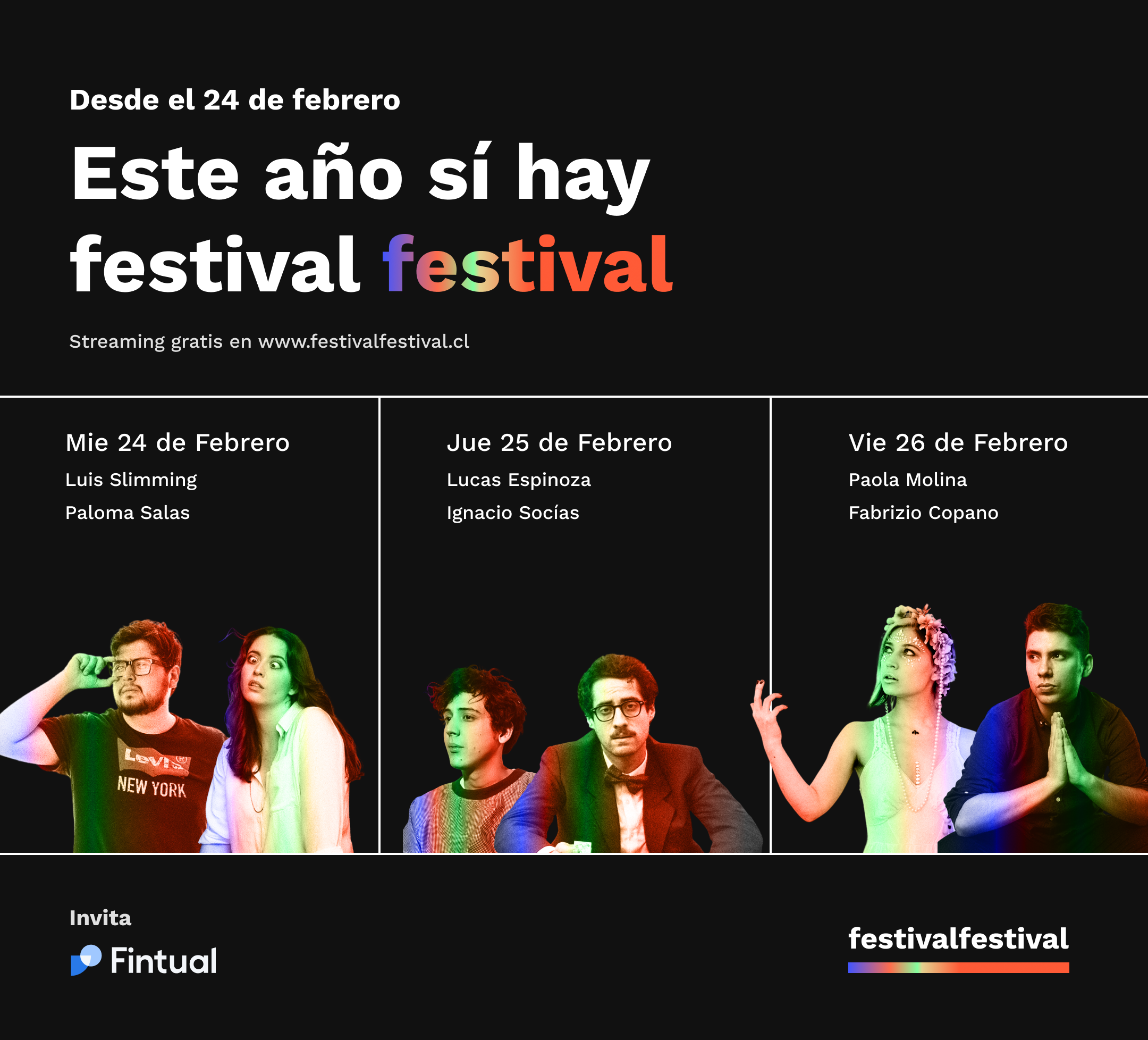 Esta gran alternativa para la falta del conocido certamen, se realizará sin censura alguna. Cada noche desde las 20 horas actuarán en vivo y vía streaming -en la página www.festivalfestival.cl- dos artistas, en un stand up sin parámetros.