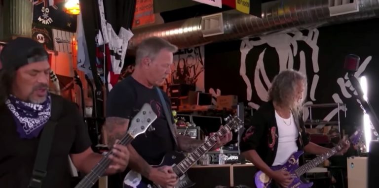 «Nos encantaría estar allí este año, pero obviamente no podemos, así que aquí estamos, y esto es para ustedes» dijo James Hetfield, antes de interpretar «For Whom The Bell Tolls», que puedes ver a continuación en Futuro.cl.