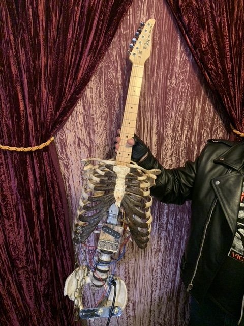 El sitio MetalSucks.net publicó esta historia bien tenebrosa, pero muy metalera. El sujeto que se hace llamar «Prince Midnight» incrustó todas las piezas y utilizó el armazón para crear esta guitarra de modelo custom propia llamada «Skelecaster».