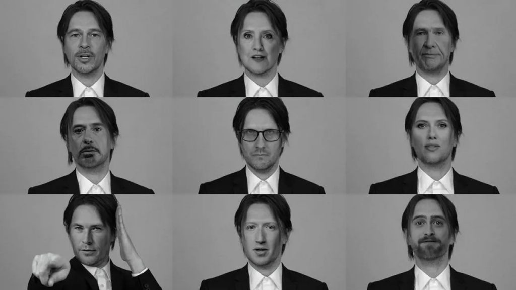 Donald Trump, Joe Biden, Robert Downey Jr, Chris Hemsworth, Scarlett Johansson, Mark Zuckerberg, Brad Pitt y David Bowie, entre otros, son los rostros que desfilan ante la cámara cantando la canción.