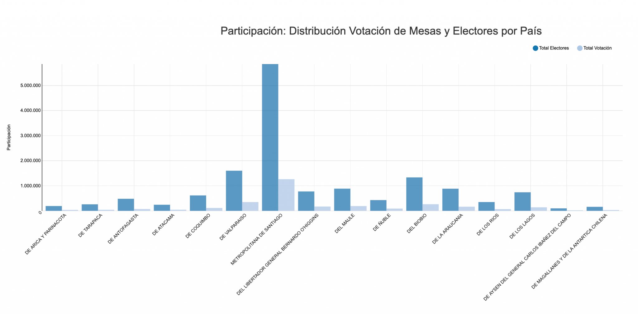 La Región de O’Higgins es la que registró mayor porcentaje de participación con 46,92%. Mientras que la Región de Tarapacá obtuvo la menor proporción de votantes en estos comicios, con 33,74%.