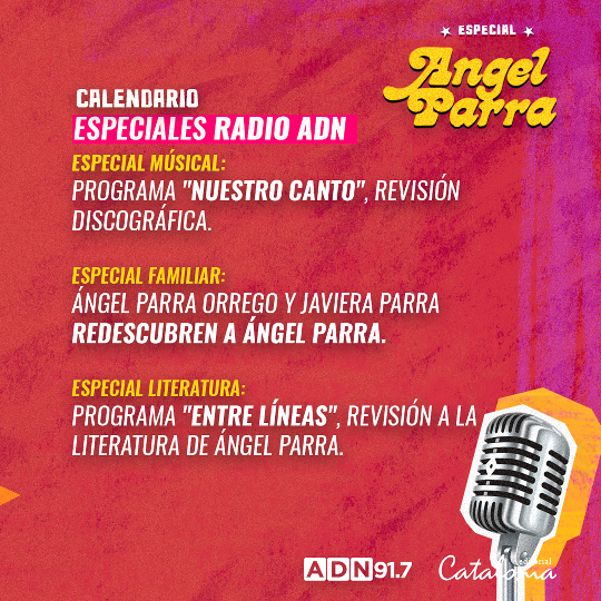 Habrá especiales realizados por sus hijos que serán transmitidos por Radio ADN, además de la publicación de un podcast que está habilitado el 27 de junio, día del cumpleaños de Ángel Parra.