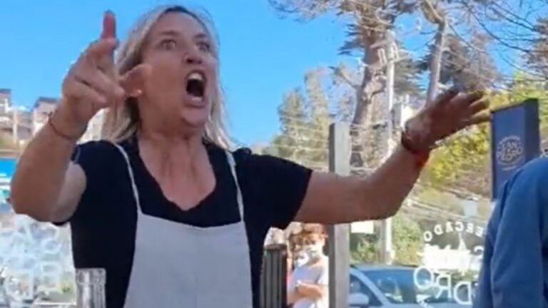 El registro es de una vecina del lugar, que reclama airada y expulsa a gente que está compartiendo en un pub por lo que muestra el clip.