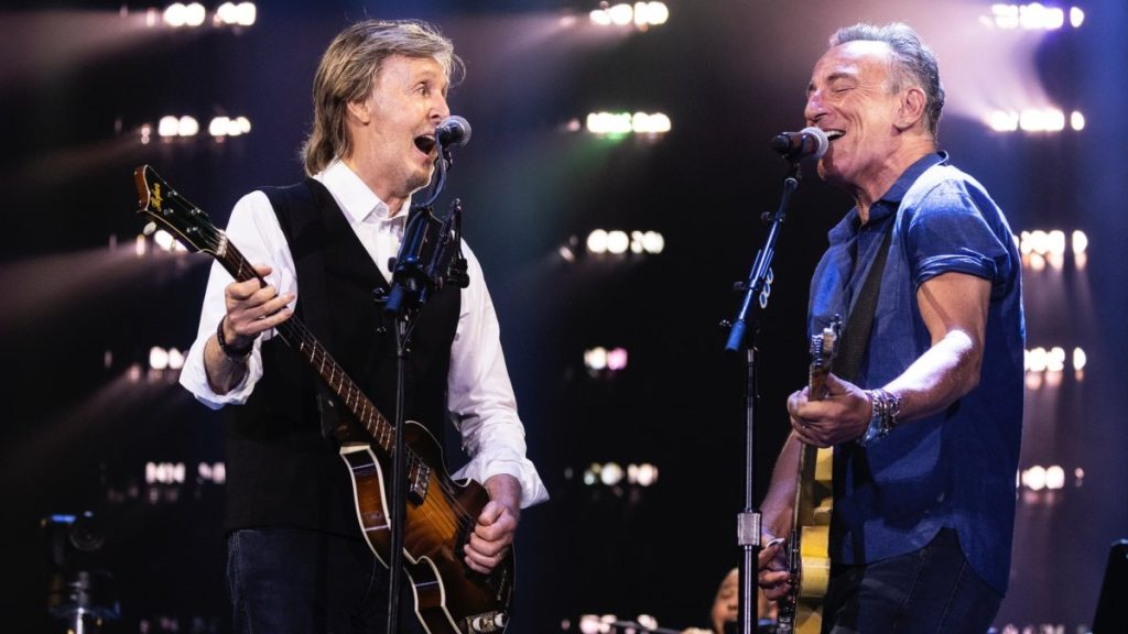 Después de una interpretación de «Band on the Run» de Wings, su canción número 27 de la noche; McCartney dio la bienvenida a Springsteen al escenario.