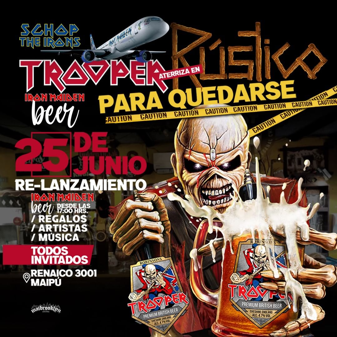 Porque no hay primera sin segunda… ¡Y a petición del público! Este sábado 25 de junio, será el re-lanzamiento 2.0 de la Cerveza de Iron Maiden «The Trooper» en formato Schop en un bar de la comuna de Maipú.