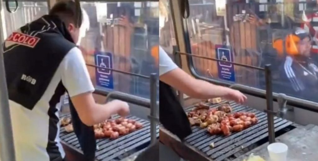 En las imágenes se aprecia a un grupo de seguidores albos coreando cánticos de la barra junto a una parrilla que contenía carne y longanizas, todo esto al interior del bus de trasporte que en aquel momento se encontraban estacionado, a plena luz del día.