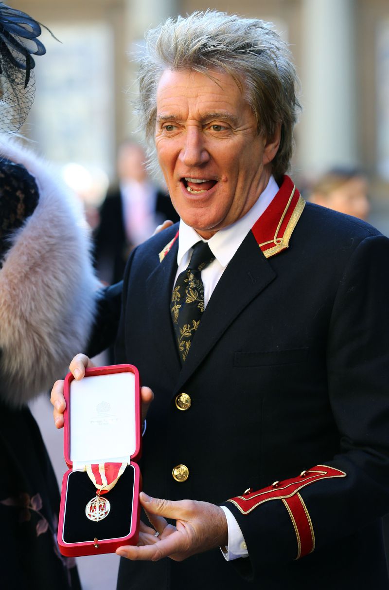 El veterano cantante Rod Stewart se convirtió en caballero en una ceremonia de 2016 dirigida por el príncipe William. El exlíder de Faces fue homenajeado por sus contribuciones musicales y caritativas.
