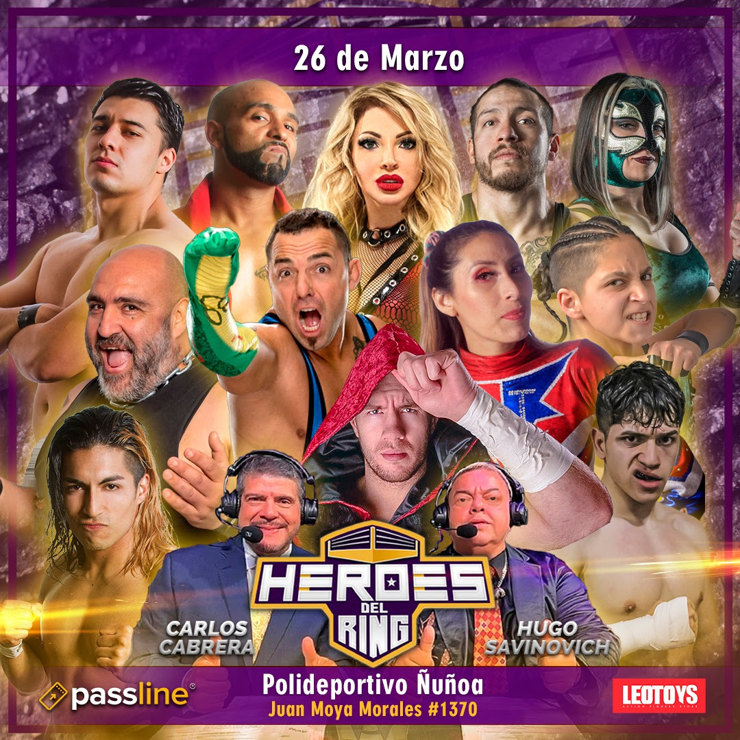 No pierdas la oportunidad única de ver a tus luchadores preferidos en acción. Este 25 de marzo a las 18:00 horas, en el Gimnasio Fortín Prat y el 26 de marzo a las 18:00 horas. El Polideportivo de Ñuñoa. Más información en heroesdelring.cl