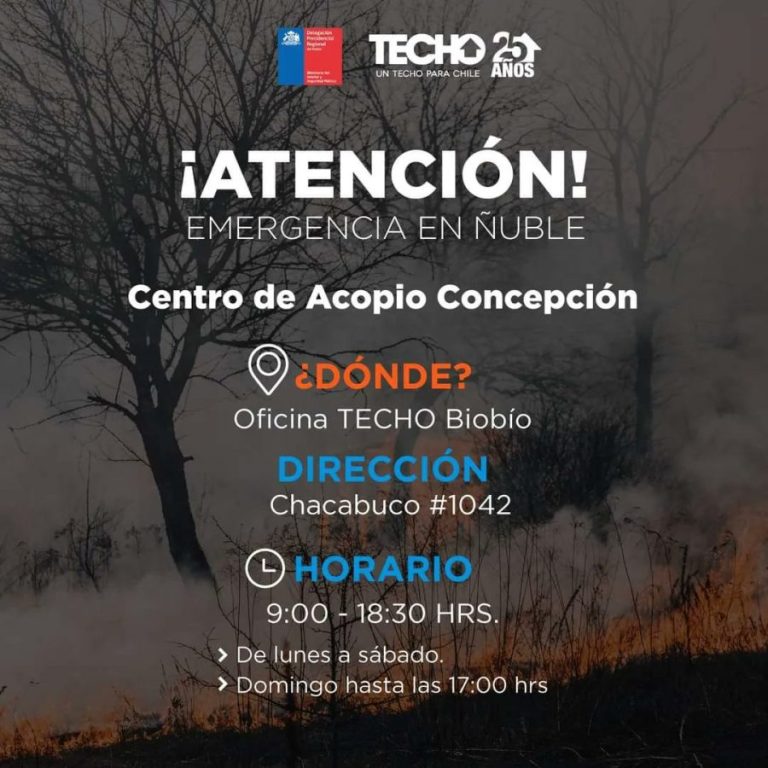 Los terribles incendios que están ocurriendo en el sur del país, arrasaron con varias comunidades de diferentes ciudades y comunas en el sur de Chile. Por esta razón, los centros de acopio son de mucha importancia para abastecer lo que necesitan las personas, más en esta oportunidad cuando el gobierno decretó Estado de Catástrofe en las regiones de Ñuble, BioBío y la Araucanía.