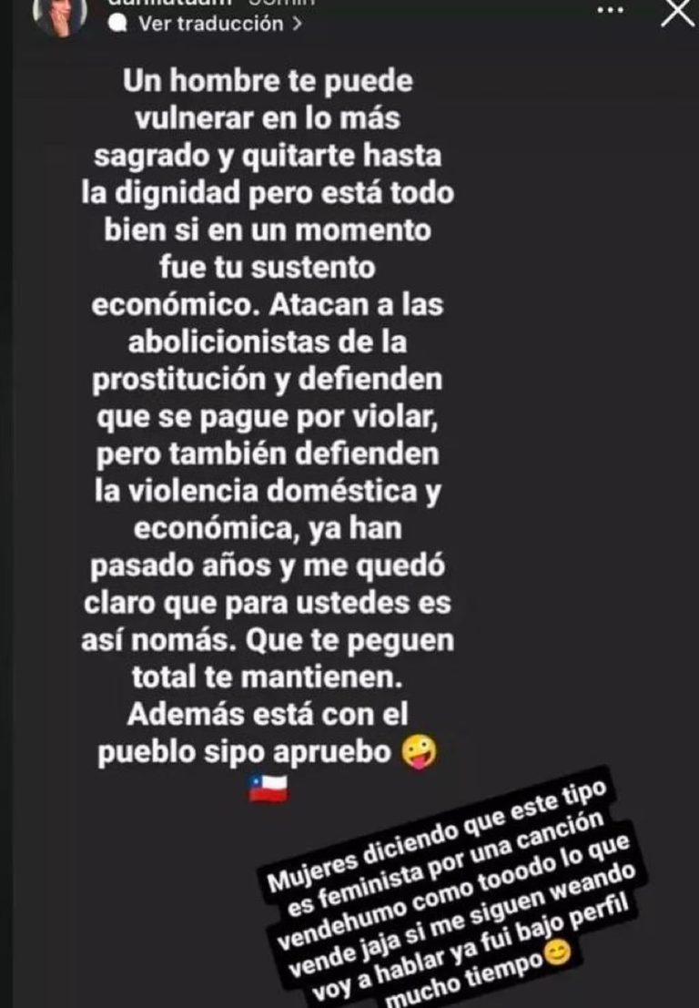 Además lanzó un escrito en contra de las mujeres y su apoyo a Jorge González: «Mujeres diciendo que este tipo es feminista por una canción vende humo, como todo lo que vende».