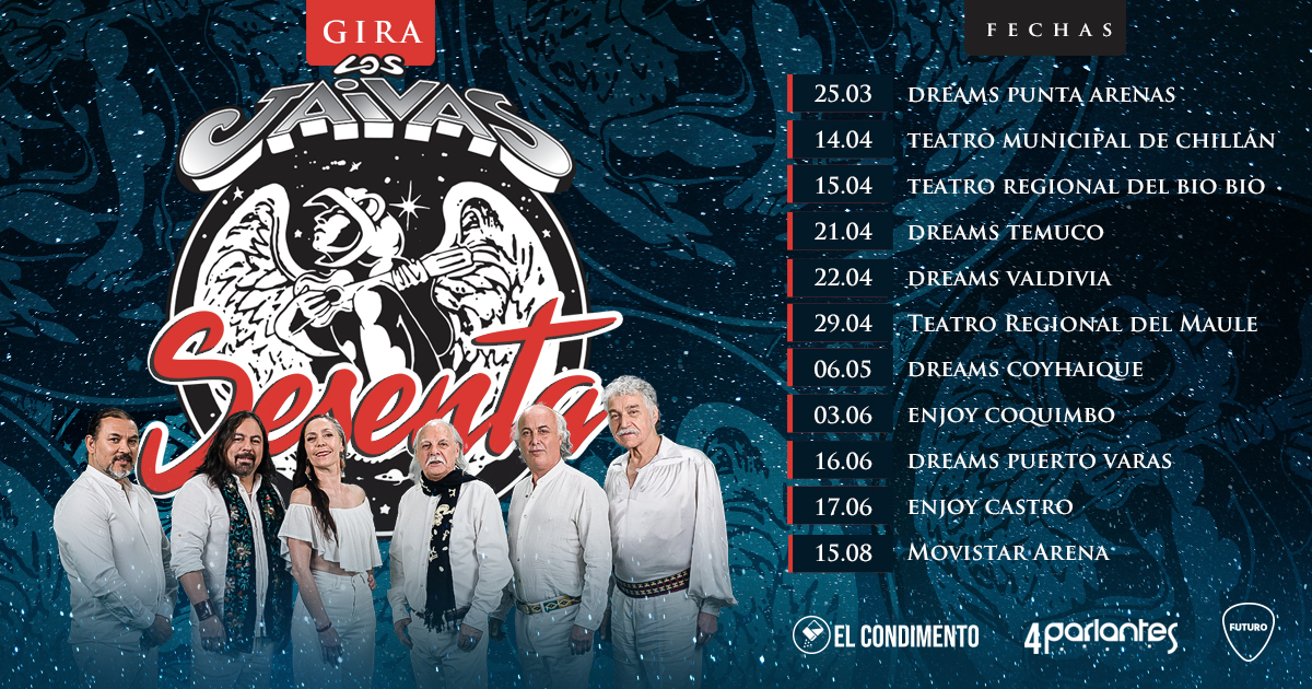 Los Jaivas celebrarán sus 60 años de carrera ininterrumpida con una gran gira nacional, y además el mismo día de su aniversario, el 15 de agosto de 2023 tendrán un show en el Movistar Arena de Santiago.