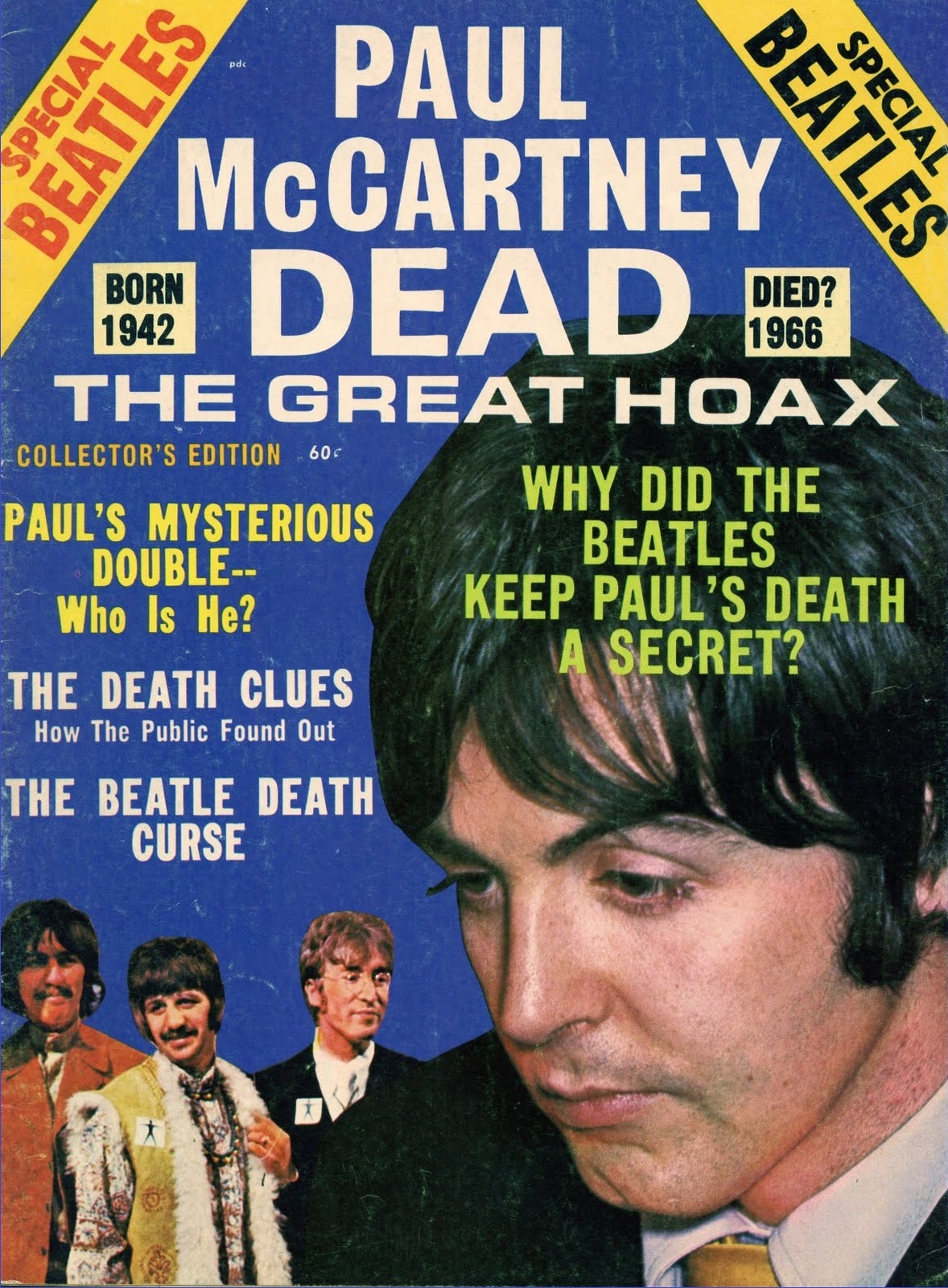 El periódico Northern Star de la Universidad del Norte de Illinois publicó una historia el 23 de septiembre de 1969 que afirmaba que McCartney había muerto en un accidente automovilístico unos años antes y había sido reemplazado por un doble. Una estación de radio en Detroit recogió la historia y la publicó. En un mes, la historia se había vuelto global y los fanáticos de los Beatles en todo el mundo se estaban rascando la cabeza colectivamente.
