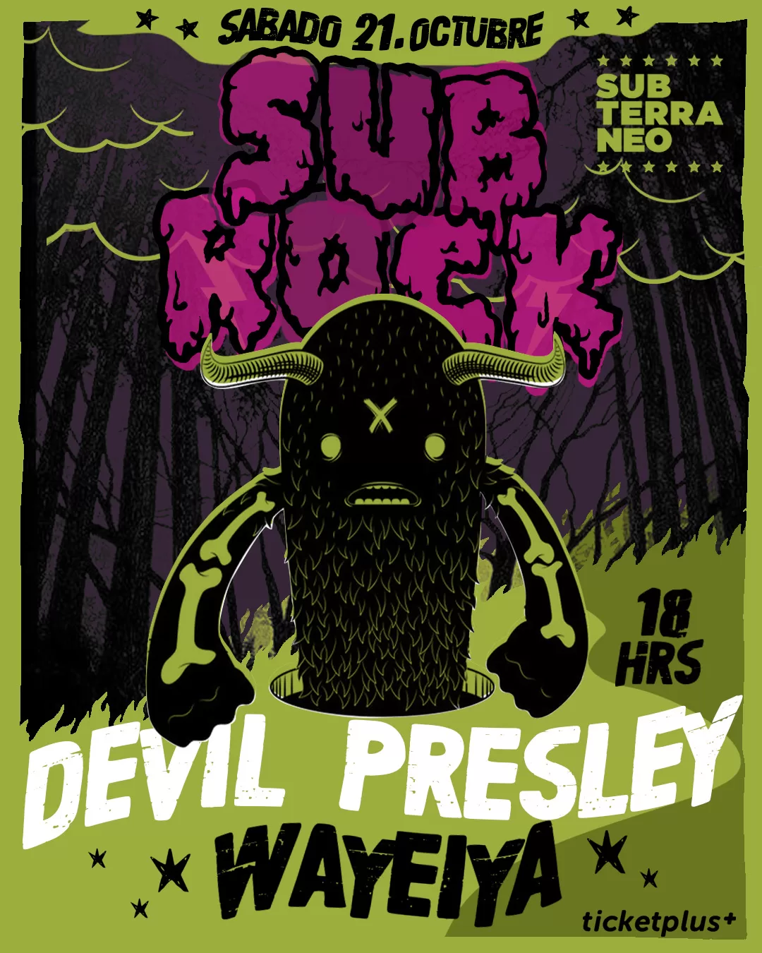 Dos de las bandas más destacadas de la escena del rock nacional se preparan para encender el escenario del Club Subterráneo en una noche que promete ser inolvidable. Devil Presley -celebrando 25 años- y Wayeiya se unirán el 21 de octubre, desde las 18 hrs., para celebrar el esperado lanzamiento del nuevo EP de Wayeiya, titulado «BULLSHI!T».
