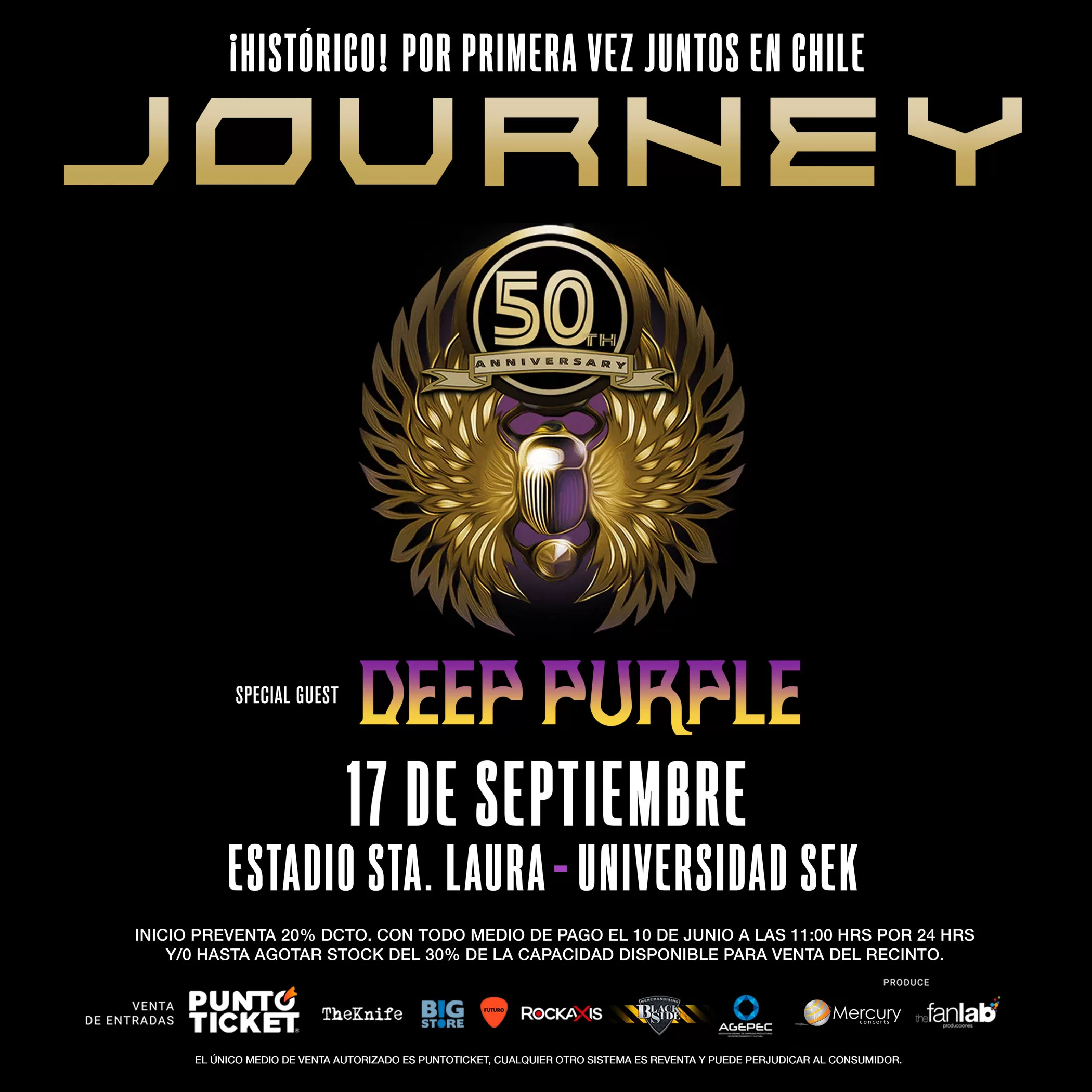 El próximo jueves 17 de septiembre, en el Estadio Santa Laura, se realizará la cita con Journey y Deep Purple, dos legendarias bandas que prometen una noche irrepetible.